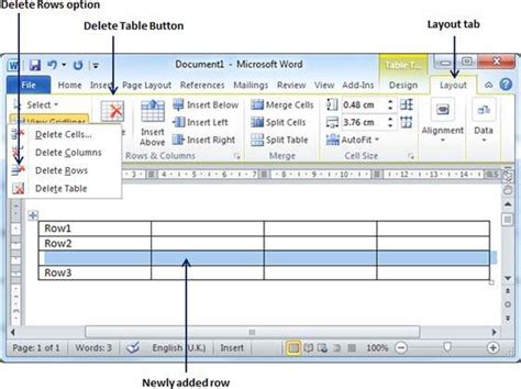 Delete/Erase A Row, Column, Or A Cell Of A Table In Word